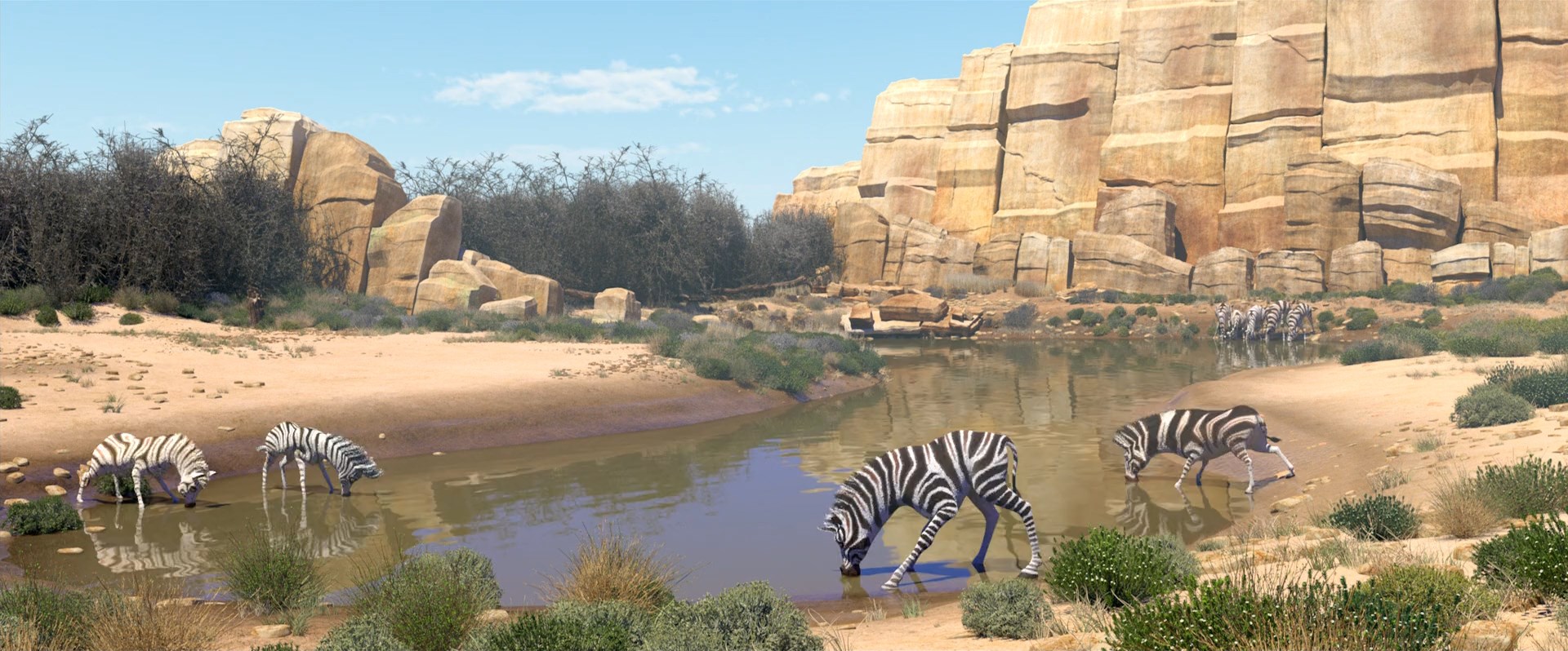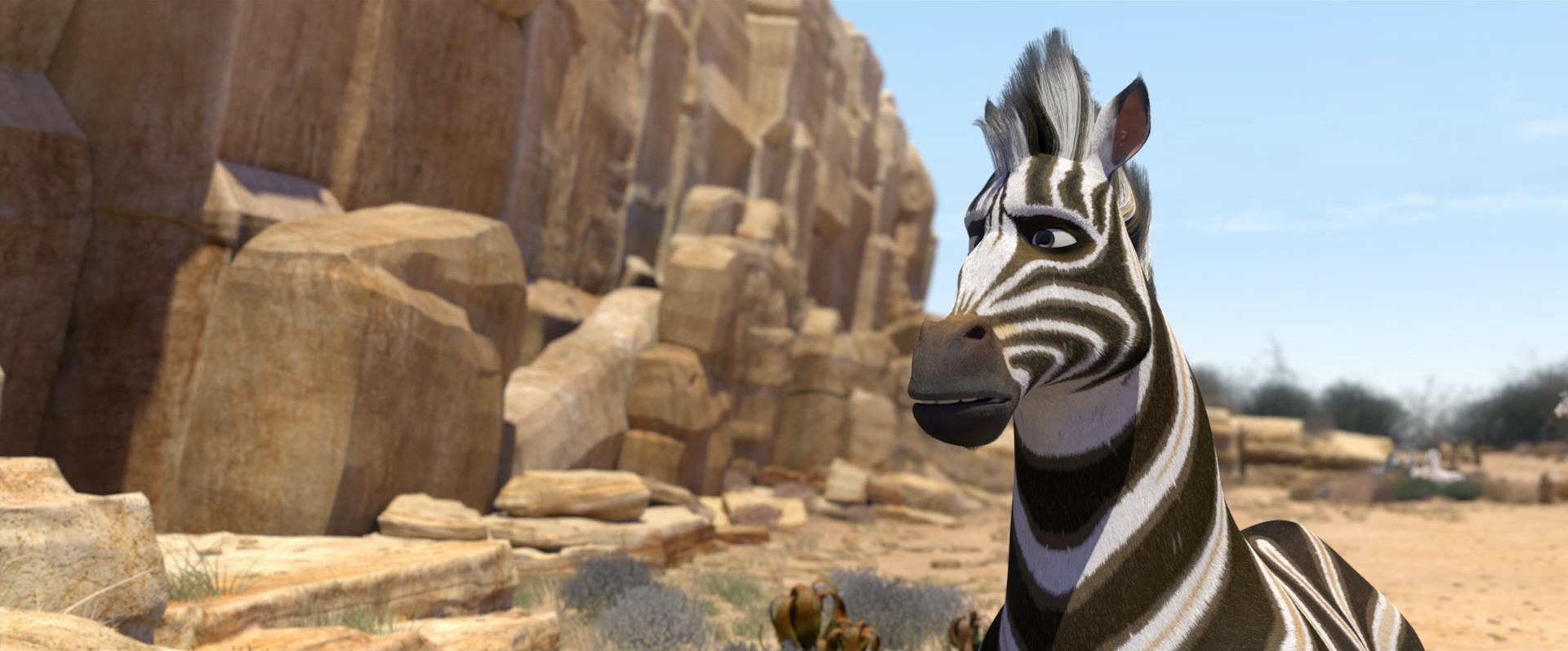 Осъзнал, че без всичките си ивици няма да може да оцелее сред останалите Кумба напуска стадото и попада в полезрението на свирепия леопард Фанго, който контролира всички източници на вода в района и тероризири по-малките същества. Животът му обаче е спасен от антилопа-гну на име Мама Ви и щрауса Брадли.