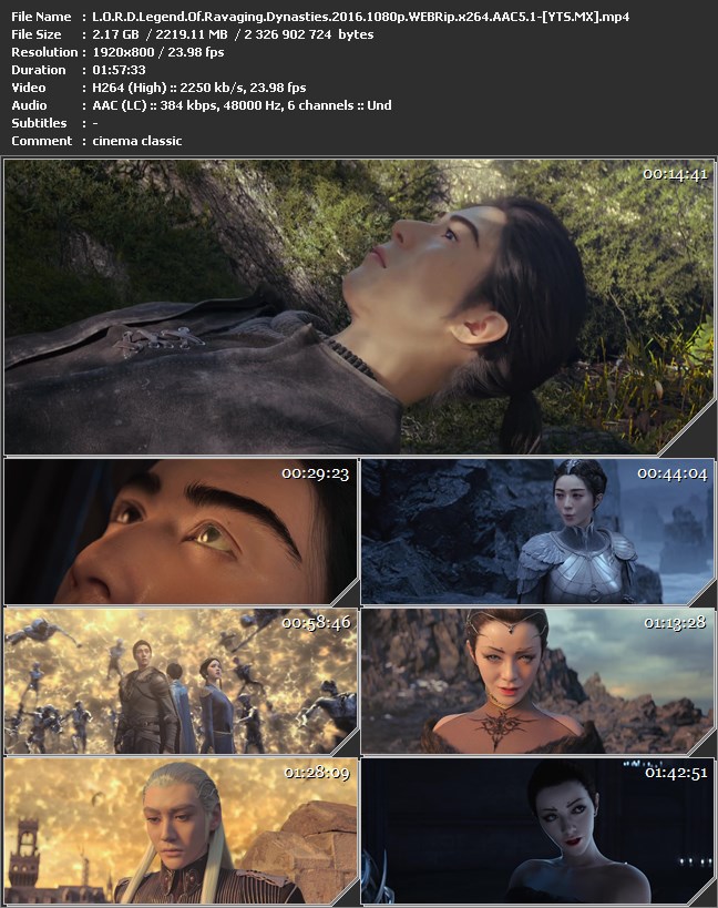 ## Title (in English): L.O.R.D: Legend of Ravaging Dynasties ## Title (in Bulgarian): Л. О. Р. Д: Легенда за Делата на Първенците ## Rip type: BRRip ## Genre: Animation ## Producer: Го Дзин Минг ## Cast: Фан Бин Бин, Крис У, Уилям Уай-Тинг Чан, Амбер Куо, Ми Янг, Рой Уан, Алекс Фонг ## Nationality: Hong Kong ## Year: 2016 ## Length: 1 h 57 min 33 s ## Video stream: =