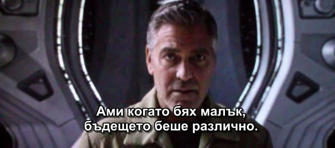 Interleave, preload duration : 500 ms ## Subtitles: in torrent ## IMDB link: http://www.imdb.com/title/tt1964418/?ref_=sr_1 ## Resume: Свързани от обща съдба, бившият вундеркинд Франк (Клуни), преследван от разочарование, и Кейси (Брит Робъртсън) – умна и оптимистична тийнейджърка, кипяща от научно любопитство, се впускат в изпълнена с опасности мисия да разкрият тайните на загадъчно място някъде във времето и пространството, известно само като "Утреландия". Онова, което трябва да извършат, променя завинаги света и самите тях. ## Other Info: .