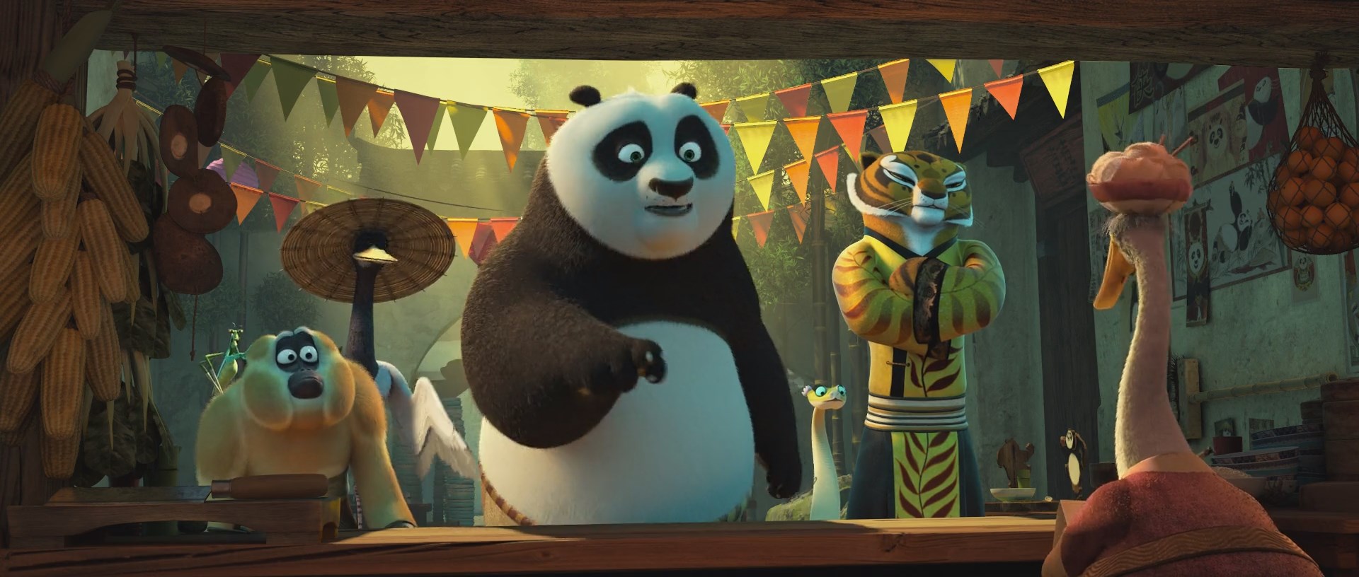 Един ден По разбира, че е избран да изпълни древно предсказание и мечтата му да се бие рамо до рамо със своите легендарни идоли Тигрицата, Жерава, Богомолката, Пепелянката, Маймуната и техния мъдър учител Шифу.