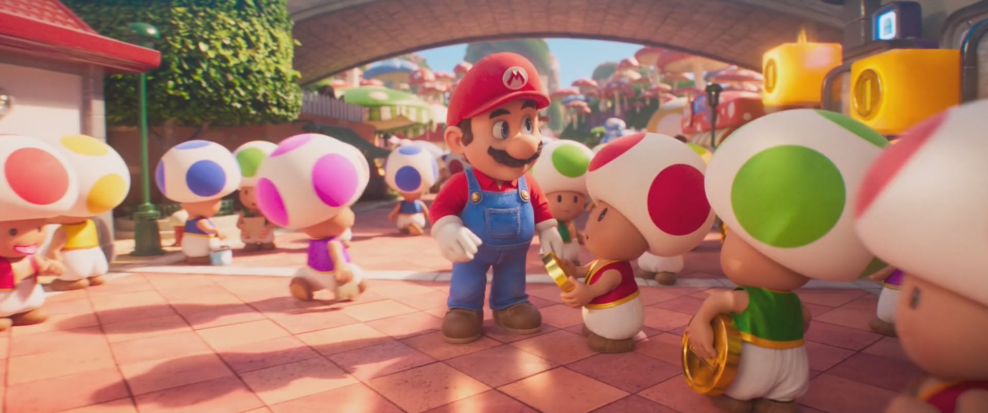 В това кралство на гъбите главният герой на "Супер Марио Bros.: Филмът" (The Super Mario Bros. 2023) среща приказно красивата принцеса на име Пийч и антропоморфната гъба на име Жаба, пред които разкрива целта си да намери Луиджи. Те решават да помогнат на Марио да намери брат си, за да спасят света от безмилостния огнедишащ дракон на име Баузер. Така всички те се озовават в друго измерение. Междувременно Баузер не смята да седи безучастно. Той е могъщият водач на всички костенурки, който е известен с многобройните си отвличания на принцесата Пийч и опитите си да завладее Кралството на гъбите, а сега отново се е върнал към намеренията си.
